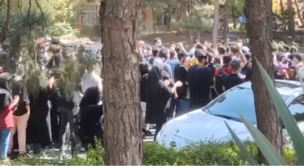 دانشجویان دانشگاه شهید بهشتی تهران در اعتراض به مرگ مهسا امینی تجمع کرده و روسری خود را آتش زدند.