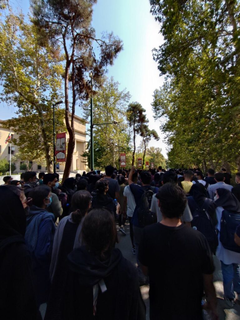 دانشجویان دانشگاه تهران در اعتراض به قتل مهسا امینی در سومین از درگذشت وی روز دست به تجمع زدند. به گزارش دانشجویان به علت حضور گسترده نیروهای امنیتی