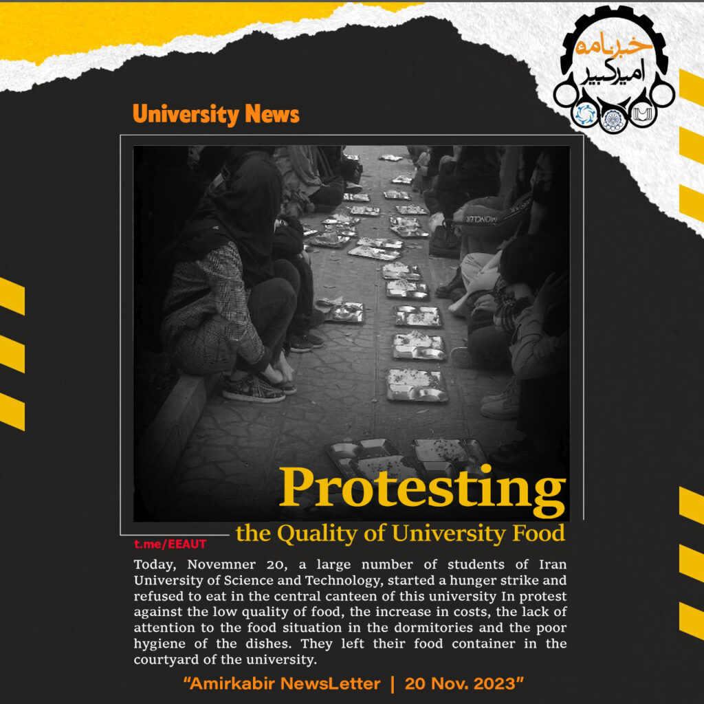 Hunger strike at Iran University of Science and Technology Students of Iran University of Science and Technology, in protest against the poor quality of cafeteria food, the removal of side dishes, the increase in costs, the lack