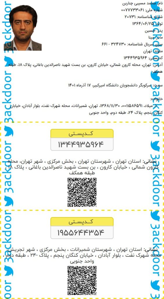 پرونده هویتی محمد مسیبی چناربن پرونده هویتی محمد مسیبی چناربن تحت تعقیب بین المللی – سرکوبگر دانشجویان دانشگاه امیرکبیر