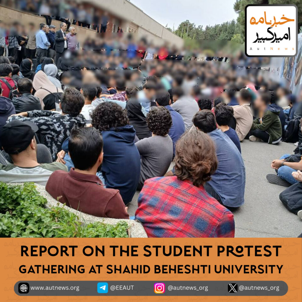 Report on the Student Protest Gathering at Shahid Beheshti University Today | Monday, October 21, 2024 A student protest gathering was held at 12 PM on campus in front of the cafeteria. Despite the fact that one of