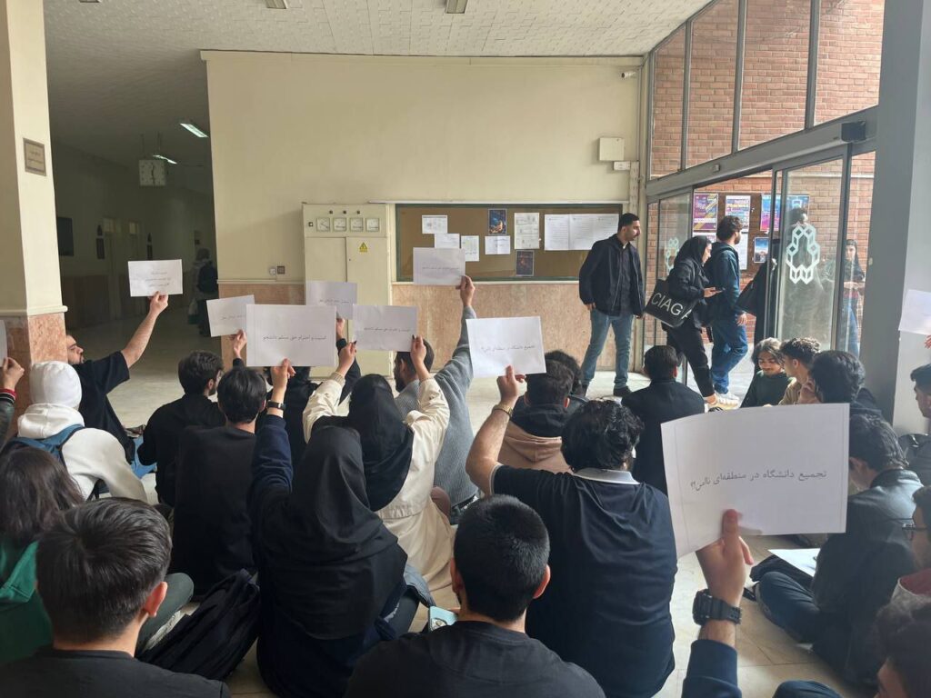 Sit-in at K. N. Toosi University of Technology According to reports received by Amirkabir Newsletter, a group of students at Khajeh Nasir University gathered this morning in the lobby of Rezaianejad Campus to protest and demand