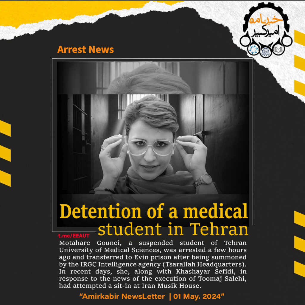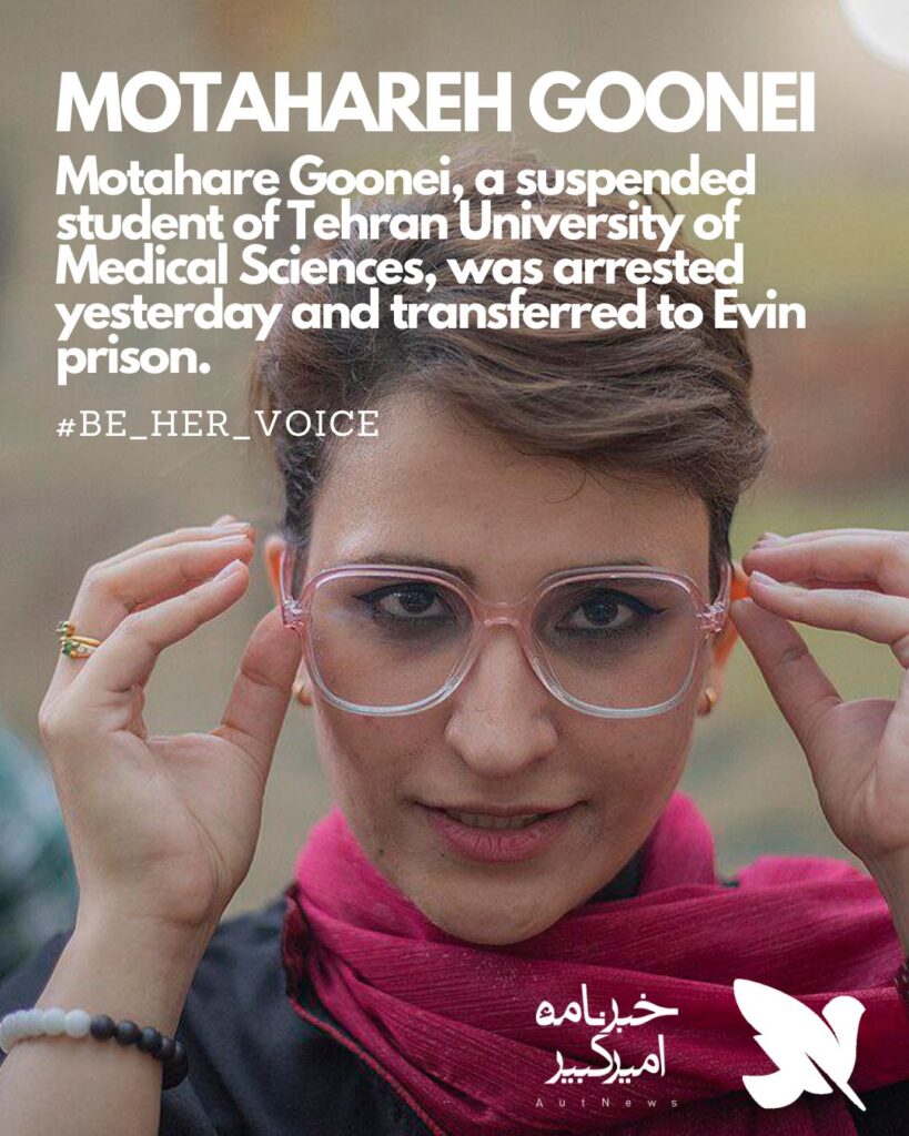 #مطهره_گونهای دانشجوی تعلیقی دانشگاه علوم پزشکی تهران پس از احضار توسط اطلاعات سپاه (سپاه ثارالله) ساعاتی پیش بازداشت و به زندان اوین منتقل شد. در روزهای اخیر وی