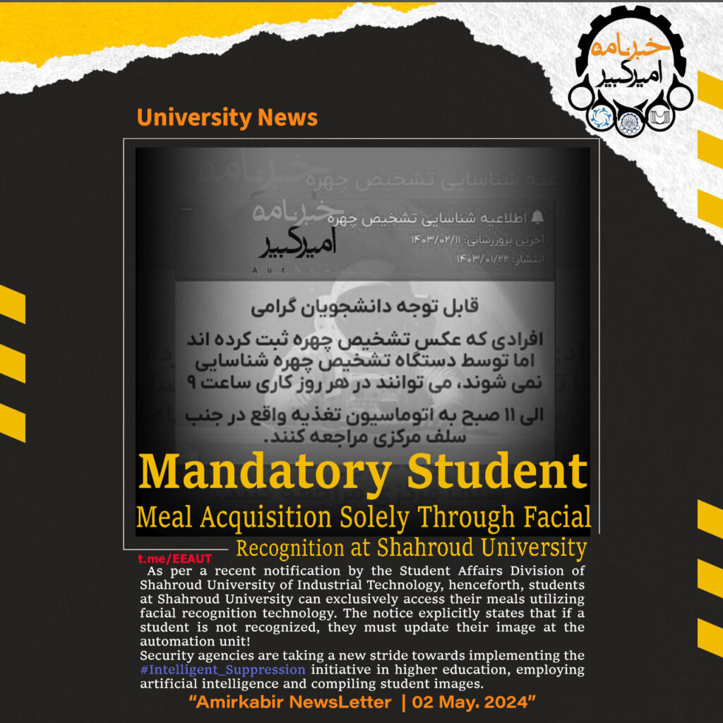 براساس اطلاعیه اخیر معاونت دانشجویی دانشگاه صنعتی شاهرود، زین پس دانشجویان دانشگاه صنعتی شاهرود تنها با استفاده از دستگاه تشخیص چهره میتوانند غذا دانشجویی خود را دریافت کنند؛