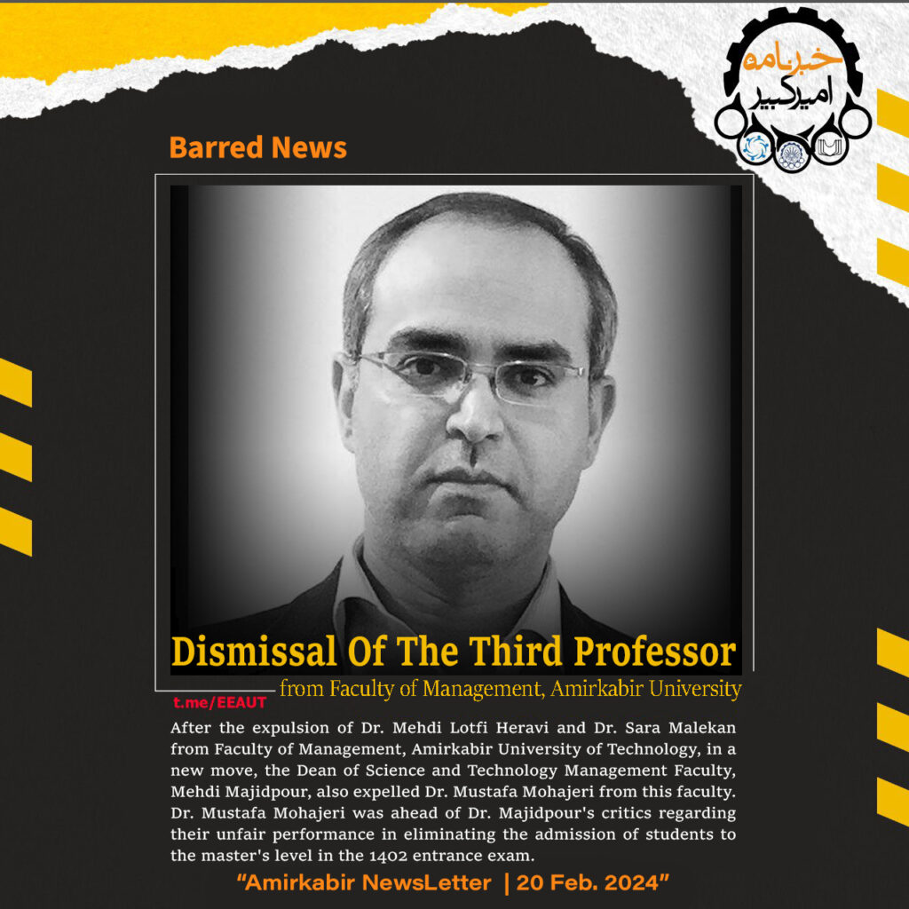 After the expulsion of Mehdi Lotfi Heravi and Sara Malkan from the Faculty of Management at Amirkabir University, in a new move, the Dean of the Faculty of