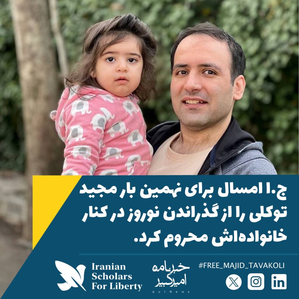 برای مجید… جمهوری اسلامی امسال برای نهمین بار مجید توکلی را از گذراندن نوروز در کنار خانوادهاش محروم کرد. برای مجید که حتی گره دستان به دور گلویش