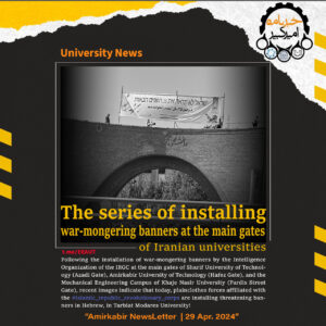 سریال نصب بنرهای جنگطلبانه در درب اصلی دانشگاههای ایران، به ایستگاه «تربیت مدرس» رسید! April 29, 2024